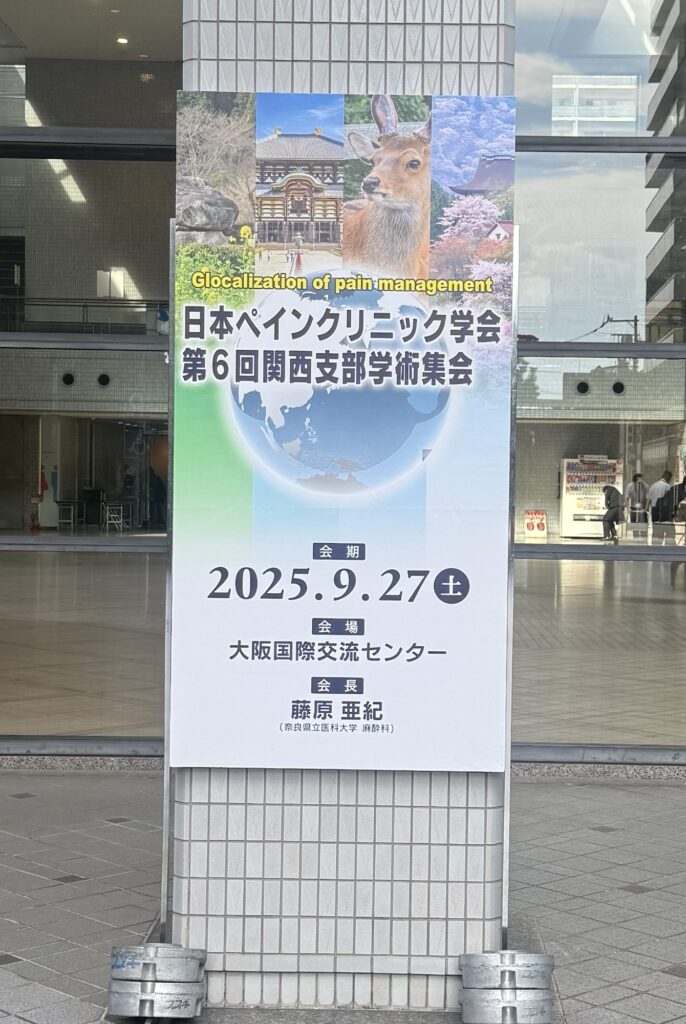 院長のつぶやき 学会に参加してきました(20250927) 2025-10-01 先週の土曜日は、お休みをいただき、ペインクリニック学会関西支部学術集会に参加してきました。 久しぶりの先輩・後輩と旧交をあたためる機会にもなりました。 §印刷は下のボタンをクリック クリックして印刷 (新しいウィンドウで開きます) 印刷 その他Tweet 院長からのメッセージ 痛みを我慢しないでください!